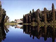 Lago Negro: um dos mais belos da região, com suas águas escuras e seus pinheiros trazidos da Floresta Negra, na Alemanhã.